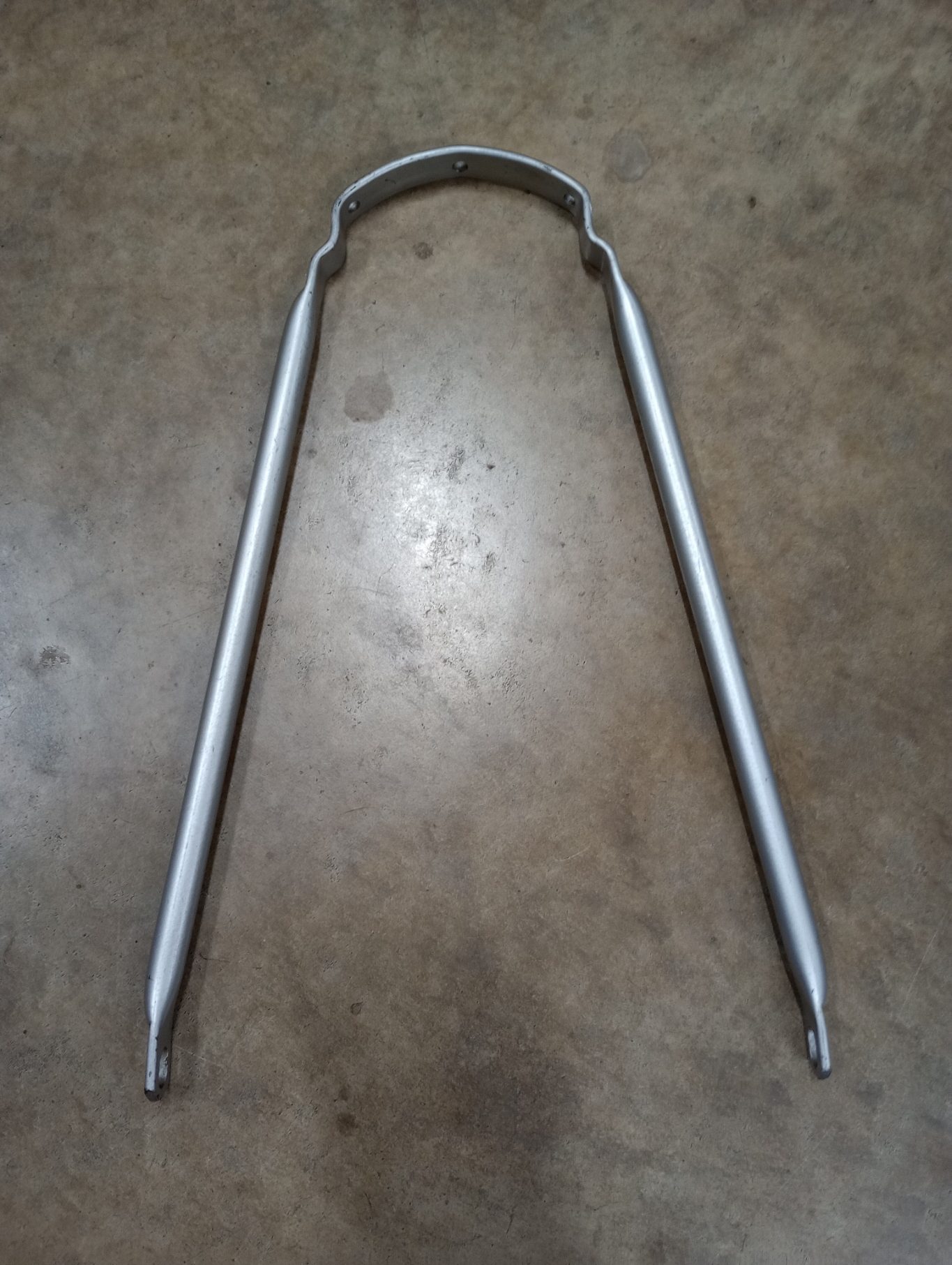 NOS silver front fender stay . Shelf worn stock , may have some scratches and nicks. Made in UK