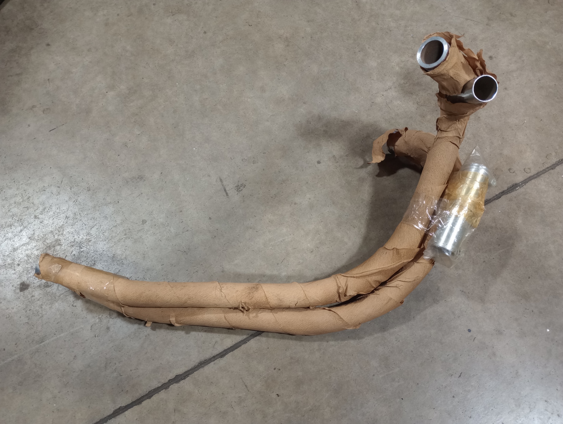 Old stock from dealer buyout.  English made with crossover pipe, for 850 Norton’s with balance pipe and clamps