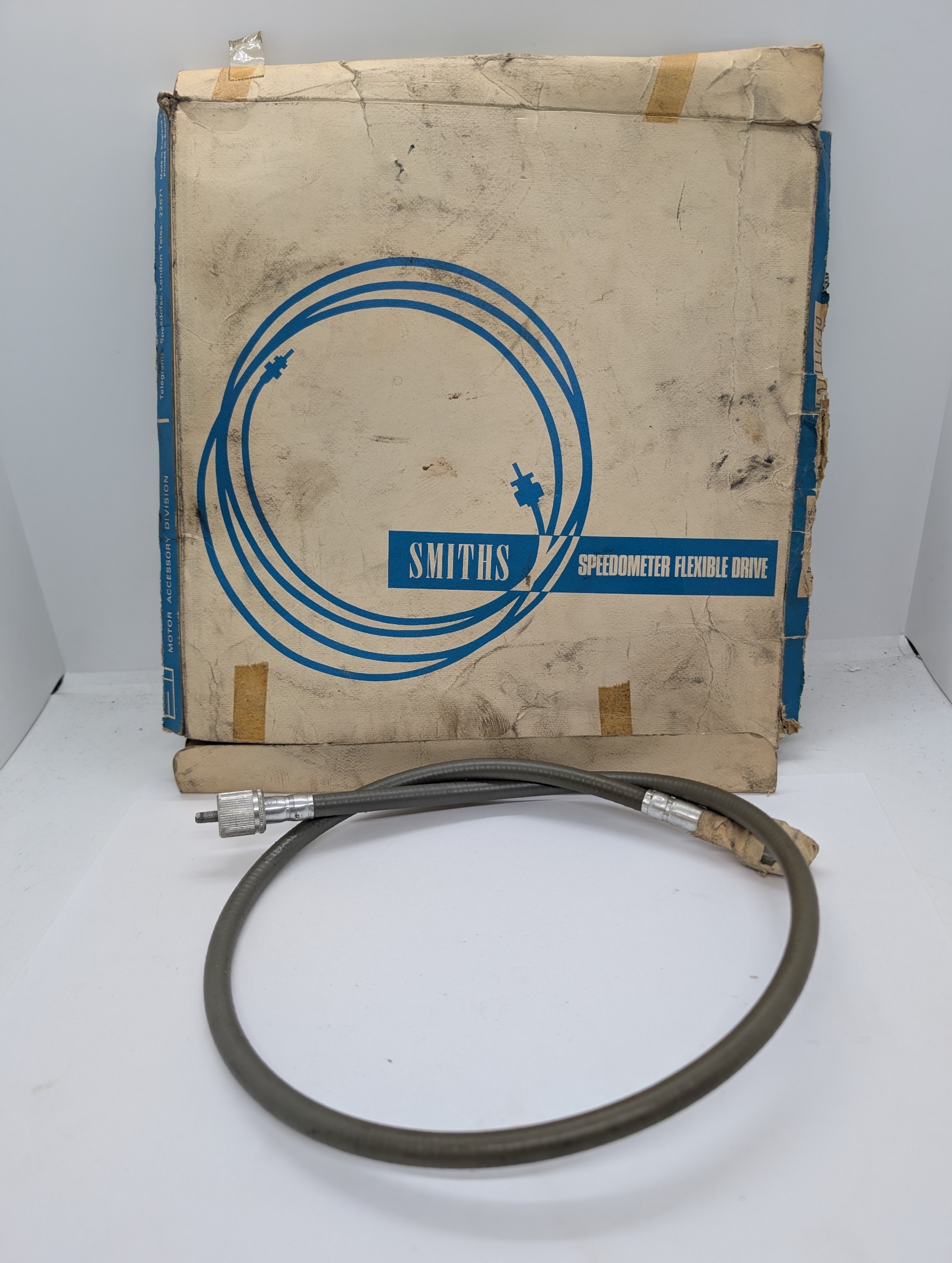 NOS Smiths tachometer cable, grey wrap, 28″ long