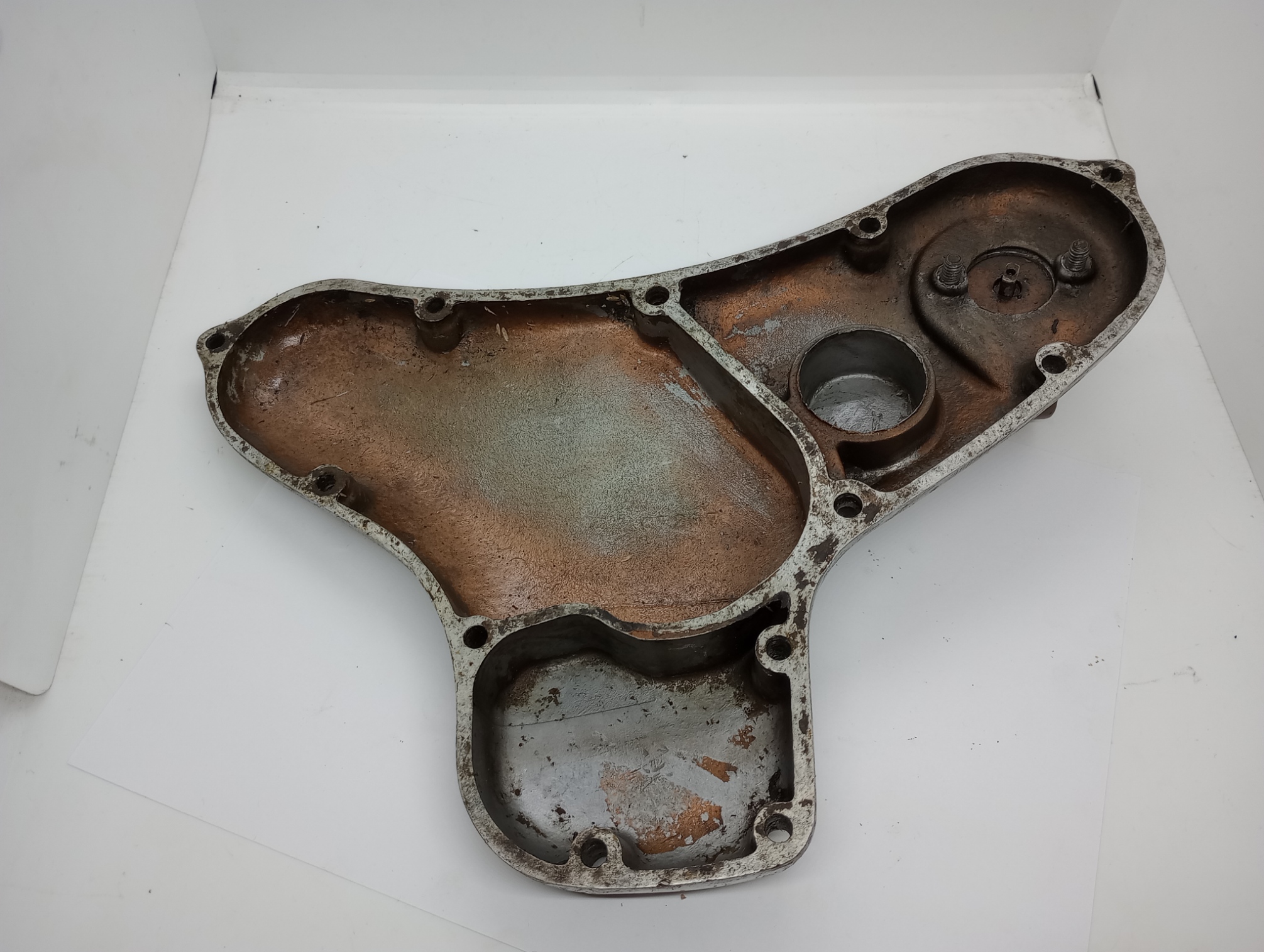 BSA A10 Tach Drive Timing Cover with Tach Drive. This is a used cover I don’t see anything major wrong with it. it has a rub mark from the shifter and a few scuffs/scratches around the rest of the cover. Nothing that can’t be polished out of it.