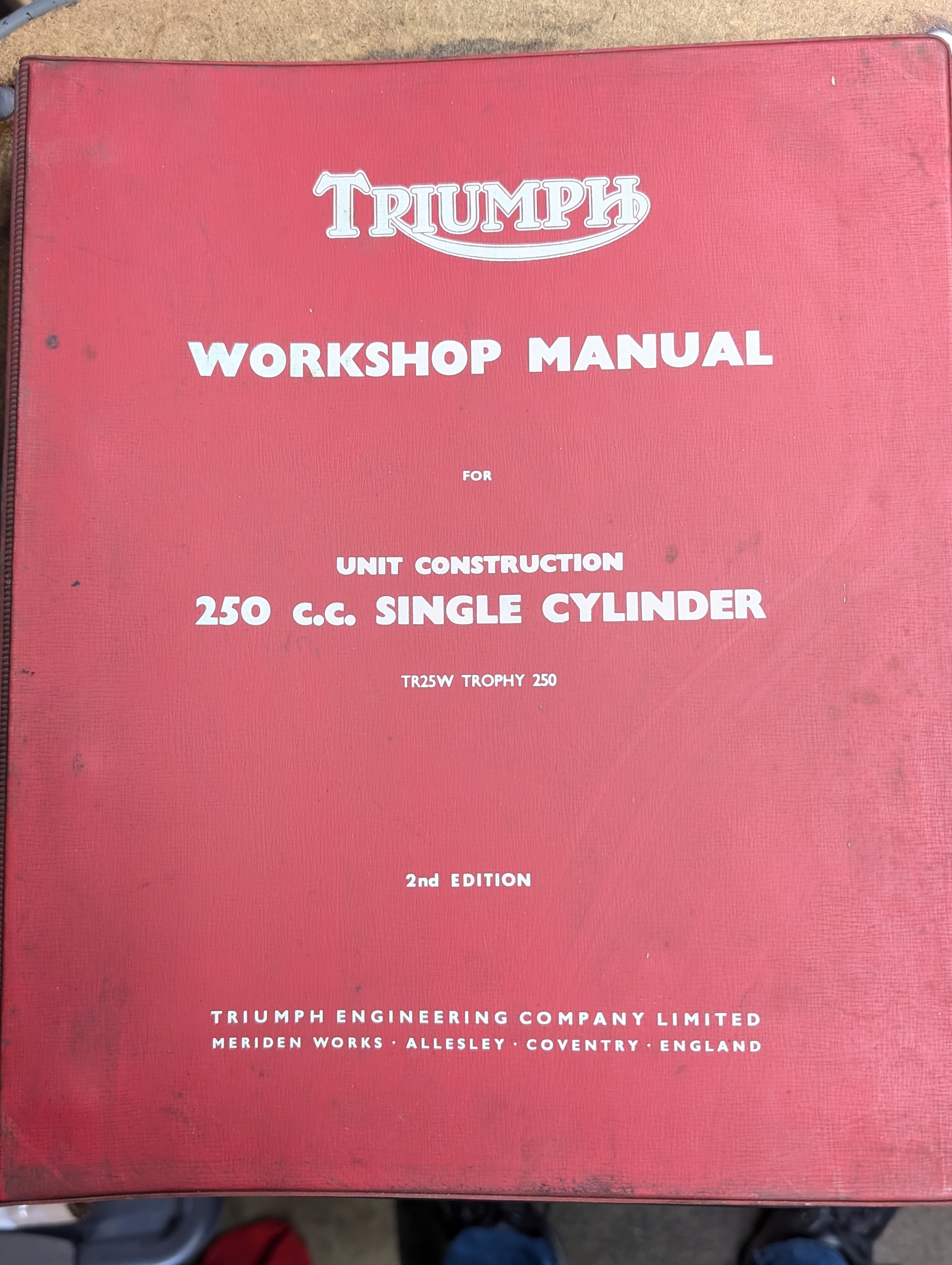 Original, used workshop manual for Triumph unit construction 250cc single cylinder TR25W Trophy 250 in binder