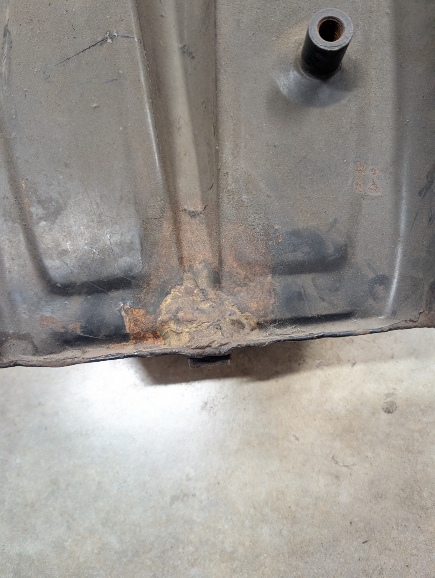 Clean metal Norton Atlas tank.  Mounts look good.  Some repairs on bottom rear.